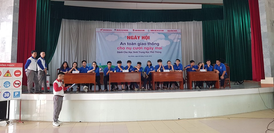Được sự đồng ý của lãnh đạo Sở Giáo dục và Đào tạo Bình Định, trường Quốc Học Quy Nhơn đã phối hợp cùng với Thành đoàn Quy Nhơn, phòng cảnh sát giao thông công an tỉnh Bình Định, công ty TNHH TM Hồng Phước tổ chức: NGÀY HỘI "AN TOÀN GIAO THÔNG CHO NỤ CƯỜI NGÀY MAI". Tham gia ngày hội là sự hứng khởi và sự tham gia nhiệt tình của học sinh trường Quốc Học Quy Nhơn.