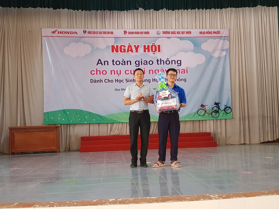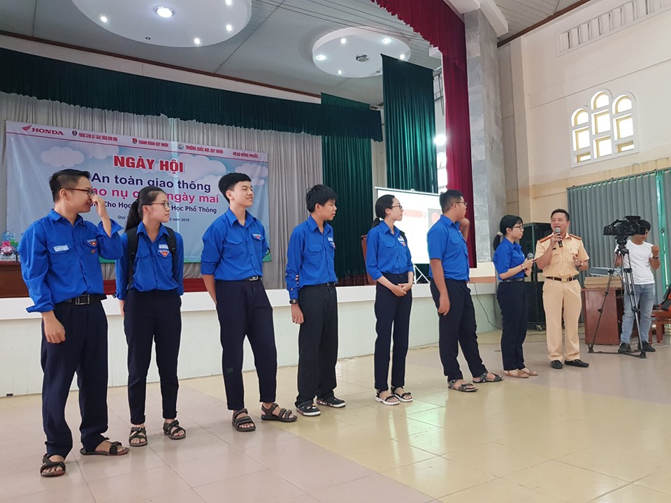 Phần đón đợi nhất của học sinh trong NGÀY HỘI "AN TOÀN GIAO THÔNG CHO NỤ CƯỜI NGÀY MAI" là những câu hỏi rất thực tế cho học sinh về tham gia an toàn giao thông của công ty TNHH TM Hồng Phước đã được nhiều học sinh hưởng ứng nhiệt tình: những câu trả lời, phần thực hành cụ thể trên sân khấu về cách đội mũ bảo hiểm đúng, cách tham gia giao thông an toàn... không chỉ giúp học sinh hiểu được những điều cần thiết để có thể bảo vệ tính mạng an toàn cho chính mình, giảm thiểu những tác hại đến mức nhỏ nhất nếu ta có kỹ năng thực hiện từ những điều mà công an Bình Định đã tuyên truyền cũng như công ty TNHH TM Hồng Phước hướng dẫn nhiệt tình. Những học sinh xuất sắc với những câu trả lời được nhận những món quà ý nghĩa từ đơn vị tham gia chương trình.